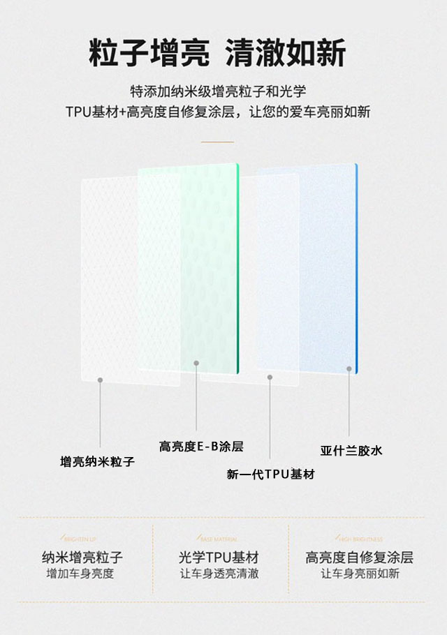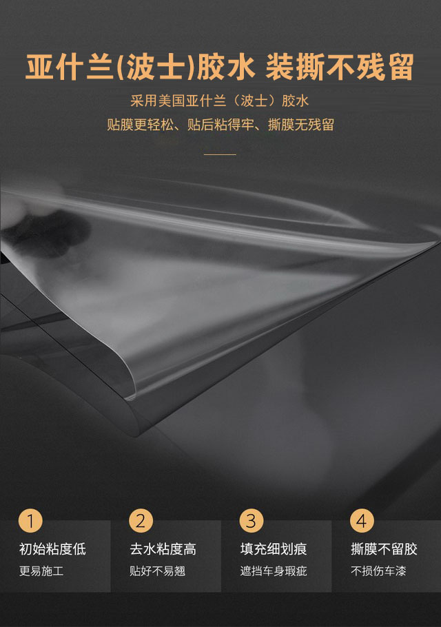 优良的光学透明度和清晰度,可以遮盖原有油漆的划痕;
